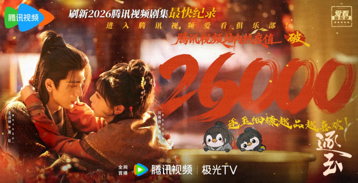 5小时更是飙升至26000,还拿下了微博热搜和平台飙升榜的双料冠军,这样的热度收货在2026年的古偶剧里算得上是断层领跑。