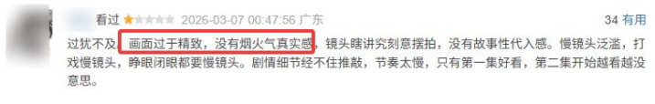 何况剧内部的东谈主齐是过度使用磨皮滤镜,演员的面部纹理齐被磨没了,画面油光感过重。
